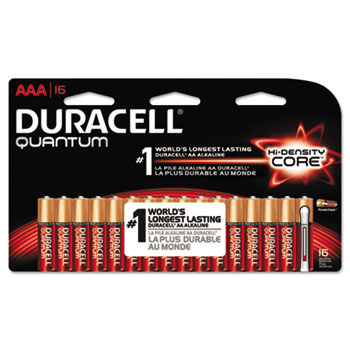Duracell Quantuma revolutionary advancement in battery technology. Its the only battery with Hi-Density Core Technology for unbeatable long-lasting power and Powercheck for instantly checking your power level at any time. Duralock Power Preserve Technology is guaranteed for 10 years in storage. Quantum batteries are ideal for use in many battery-powered devices, including portable electronics, wireless mice, testing equipment, remote controls, flashlights, calculators, clocks, radios, keyboards and more. Battery Type: Alkaline; Battery Size: AAA; For Use With: Everyday Electronic Devices; Voltage: 1.5 V.