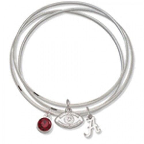 Now You Don'T Have to Sacrifice Style to Support Your Favorite Ncaa Team with This University of Alabama Crimson Tide Bangle Bracelet Set. This Nice Accessory Features Three Silver Tone Bangles with a Polished Finish. Each Bangle Comes with Their Own Silver Tone Charm Including a Red Colored Crystal and the Official Crimson Tide Logo. Let the Ladies Show Off Their Team Spirit with This University of Alabama Crimson Tide Bangle Bracelet Set. Processing Time: 10 days. BRAND : NCAA OFFICIALLY LICENSED CHAIN TYPE : OTHER CHAIN TYPE CLASP TYPE : NO CLASP TYPE Gem Type : CRYSTAL GEM TYPE : QUARTZ METAL STAMP : 28.3 METAL TYPE : SILVER METAL UNIT OF MEASURE : GRAMS SIZE : 7 STONE CLARITY : I1 STONE COLOR : RED STONE COLOR - 3 : RED STONE CUT : VERY GOOD CUT STONE SHAPE : ROUND SHAPE STONE WEIGHT : 1.00 TOTAL GEM WEIGHT : 1.00 TOTAL METAL WEIGHT : NO METAL STAMP UNIT OF MEASURE (DIMENSIONS) : IN