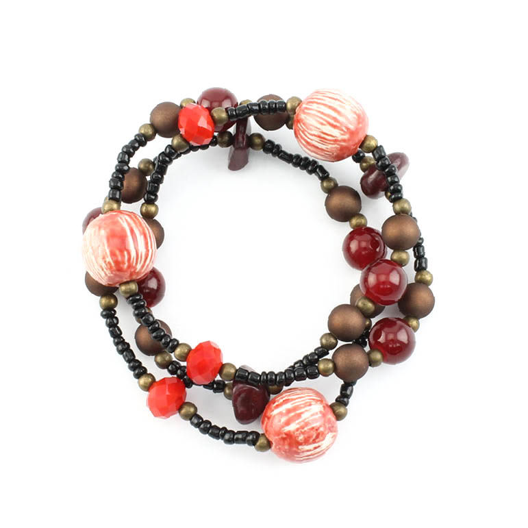 RED SEED BEAD BALL BRACELET - CASE OF 6
