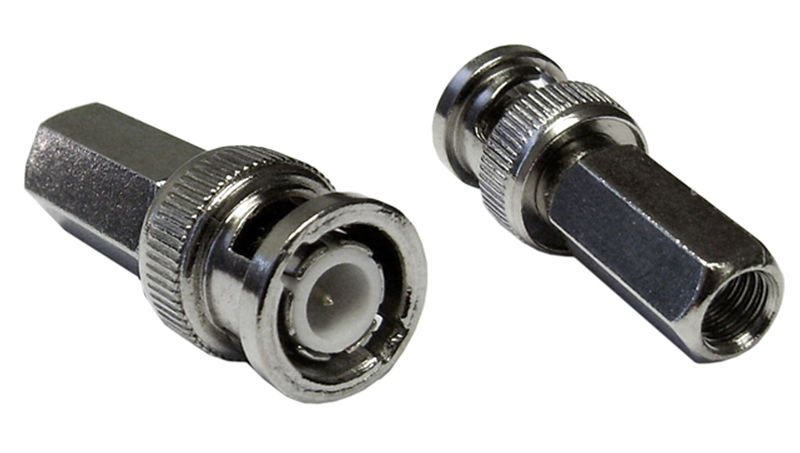 BNC RG6 Twist On connector. Use this RG6 BNC twist on plug to terminate an RG6 coaxial cable. Common uses are CCTV, Surveillance and Security video systems. Additional Details Connection: BNC Male Plag. Weight: .3 lbs. Surveillance and Security video systems. BRAND : CABLE WHOLESALE