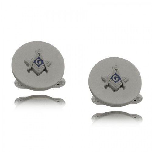 Round Masonic Cuff Links in Silver Tone with Signet |