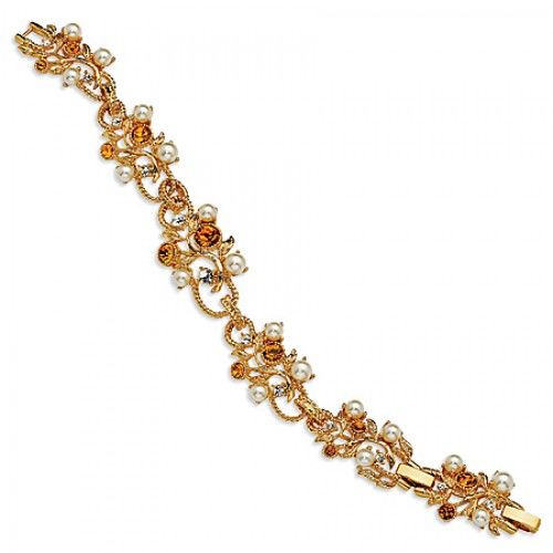 This Is a Charming Pearl Link Bracelet. It Bares a 3.0mm Round Simulated Pearl Stone. It Is Forged in Gold Plated. This Bracelet Has a Link Chain and Unveils a Fold Over Clasp to Keep It Linked. This Is Concisely Polished to a Polished Finish. Capture This Tempting Pearl Link Bracelet Now and Feel Like YouRe a Queen with These Accents. Processing Time: 1 days. BRAND : JACQUELINE KENNEDY CHAIN TYPE : LINK CLASP TYPE : FOLD OVER METAL STAMP : 0.5 METAL TYPE : GOLD PLATED METAL UNIT OF MEASURE : GRAMS NUMBER OF PEARLS : 18 PEARL LUSTRE : MEDIUM LUSTER PEARL MINIMUM COLOR : WHITE PEARL SHAPE : ROUND PEARL STRINGING METHOD : NOT STRUNG PEARL SURFACE MARKINGS AND BLEMISHES : LIGHTLY BLEMISHED PEARL TYPE : SIMULATED PEARL PEARL UNIFORMITY : GOOD TO VERY GOOD SIZE : 7.5,8.5 (7.5" + 1" EXT) SIZE : 7.5,8.5 (7.5" + 1" EXT) SIZE PER PEARL : 3.0MM TOTAL GEM WEIGHT : 0.50 TOTAL METAL WEIGHT : NO METAL STAMP UNIT OF MEASURE (DIMENSIONS) : IN