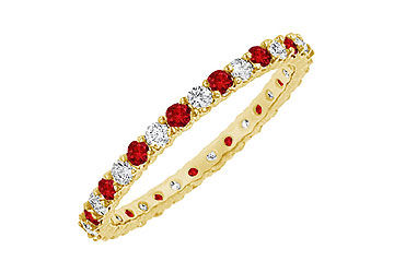 A fashionable circle eternity bangle surrounded with alternate sparkling brilliant-cut round diamonds rubies are beautifully prong-set. Made in 14K yellow gold has a total gem weight (TGW) of 6.00 carat. This gorgeous eternity bangle is made in USA and we can make this bangle exactly as per your wrist. Call us for free bangle sizer.