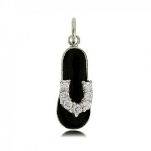 Sandal Charm Pendant W/ Black Enamel & White Cz Accent |