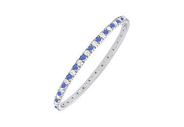 A fashionable circle eternity bangle surrounded with alternate sparkling brilliant-cut round diamonds blue sapphires are beautifully 4-prong-set. Made in 14K white gold has a total gem weight (TGW) of 2.00 carat. This gorgeous eternity bangle is made in USA and we can make this bangle exactly as per your wrist. Call us for free bangle sizer.