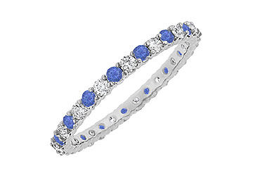 A fashionable circle eternity bangle surrounded with alternate sparkling brilliant-cut round diamonds blue sapphires are beautifully 4-prong-set. Made in 14K white gold has a total gem weight (TGW) of 6.00 carat. This gorgeous eternity bangle is made in USA and we can make this bangle exactly as per your wrist. Call us for free bangle sizer.