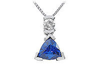 A trillion-cut intense blue sapphire team up with a brilliant-cut round diamond for a maximum fresh look. Made in 14K white gold this pendant has a total gem weight (TGW) of 1.25 ct.