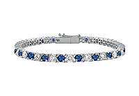 A continuous row of gems signifies your everlasting love. Deep blue sapphires and brilliant-cut diamonds alternate beautifully in a 18K white gold prong-setting. This tennis bracelet has a total gem weight (TGW) of 5.00 ct