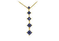 Five graduating princess-cut sea blue sapphires set in a straight row make a stylish sleek pendant. Made in 14K yellow gold it has a total weight (TGW) of 1.50 ct.