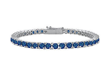 Brilliant-cut round diffuse sapphires are prong-set in a sleek straight .925 sterling silver with high shine rhodium plated. This gorgeous tennis bracelet has a total gem weight (TGW) of 3.00 carats is secured with a safety clasp.