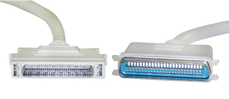 | SCSI III cable, HPDB68 (Half Pitch DB68) Male to Centronics 50 (CN50) Male, 25 Twisted Pairs, Double Shielded, Latch, 1.5 foot |