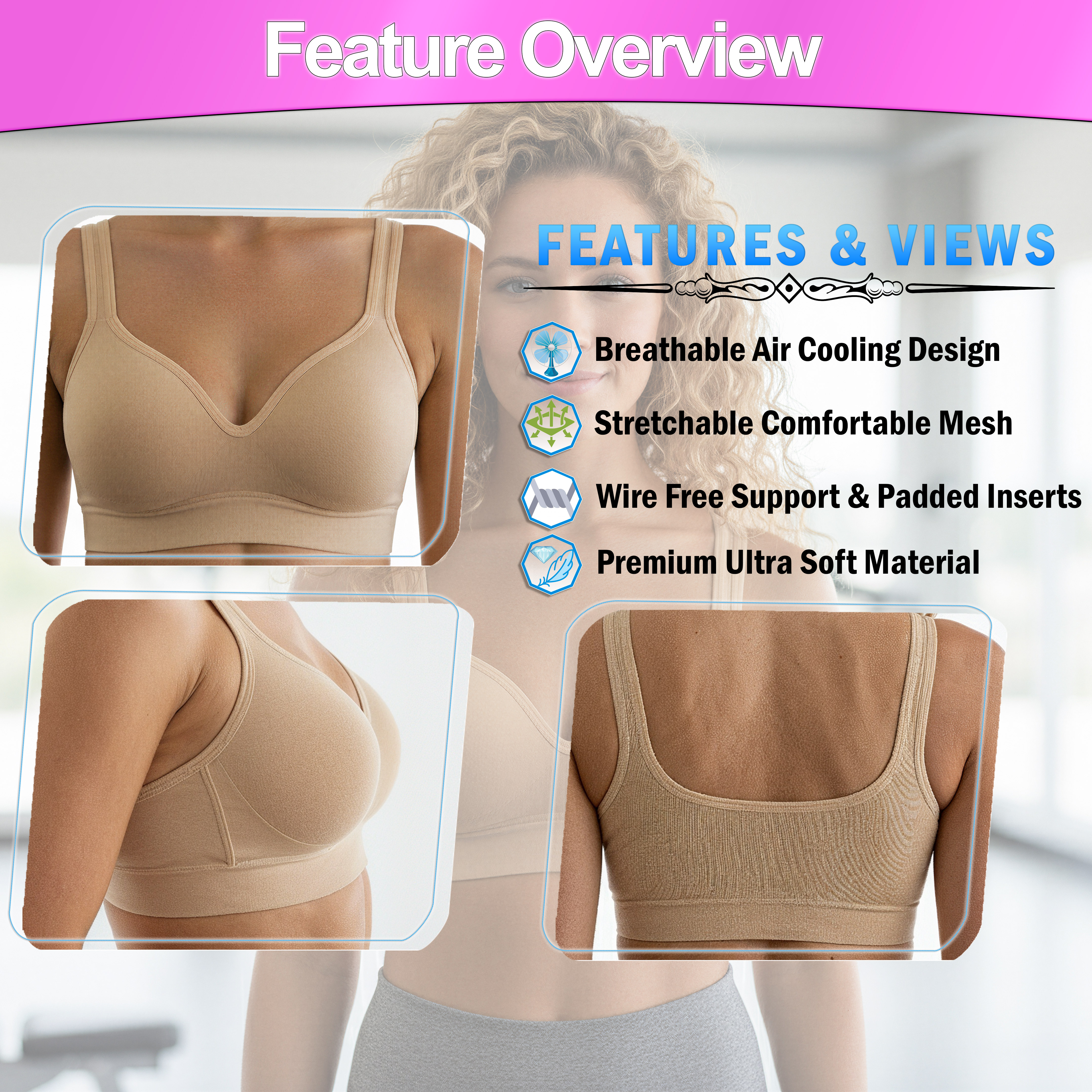 Seamless Wireless Bra with Natural Lift – Wire-Free Padded Inserts for Support and Shaping, Breathable Air Cooling Mesh Prevents Chafing, Premium Ultra Soft Stretchable Material, Ideal for Daily Wear by Office Workers, Beige for Versatile Confidence,