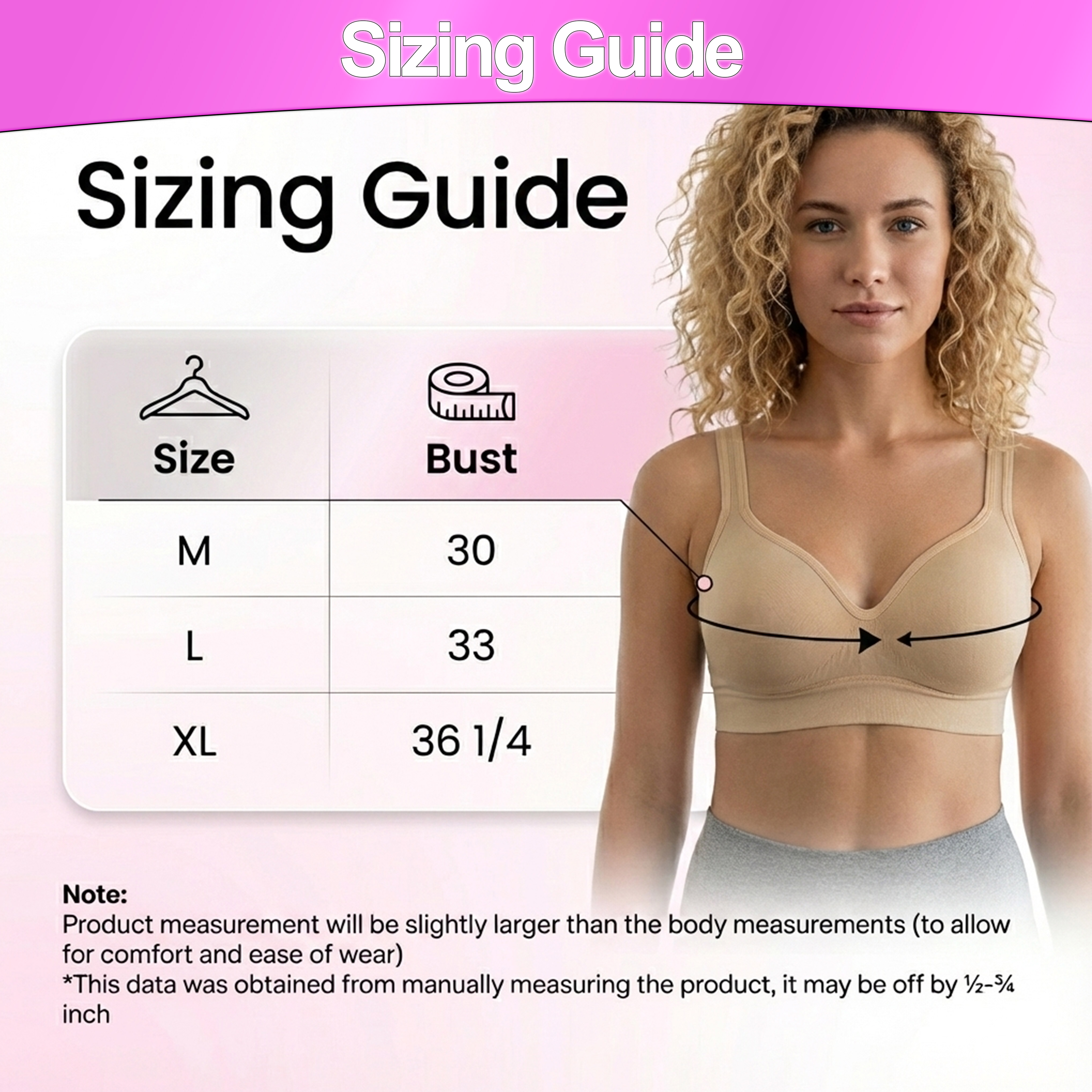 Seamless Wireless Bra Provides Natural Lift Without Underwires: Experience wire-free support through padded inserts that deliver gentle shaping and all-day comfort, so you can move freely without digging or discomfort during daily routines. The breathable mesh design allows air flow to keep you feeling fresh from morning to evening. Padded Inserts Deliver Reliable Shaping and Support Mechanism: Natural lift comes from strategically placed padding that enhances your silhouette gently and securely, eliminating the need for wires while maintaining structure for everyday activities, so you can feel supported throughout the day without adjustments. Breathable Mesh Construction Ensures Air Cooling Comfort: Stretchable mesh fabric promotes airflow to reduce heat buildup, creating a cooler wearing experience with its seamless edges that prevent irritation, so you stay comfortable during extended wear in various settings without feeling restricted. Ultra Soft Seamless Material Builds Lasting Daily Comfort: Premium soft fabric stretches to fit your shape smoothly, avoiding chafing or visible lines under clothing, which provides a luxurious feel that enhances your confidence so you can focus on your day with ease and poise. Natural Support Fits Bust Sizes from Thirty to Thirty-Six Inches: Available in medium, large, and extra-large for bust measurements up to thirty-six inches, this design offers stretchable hold that adapts to your body, so you enjoy reliable fit for work, errands, or light movement without slippage. Versatile Beige Shade Suits Everyday Wardrobe Essentials: Neutral nude color blends seamlessly under light or dark tops, paired with the wire-free structure for versatile layering, so you can transition effortlessly from professional outfits to casual wear while maintaining a polished appearance. Gentle Care Instructions Preserve Fabric Stretch and Softness: Hand wash in cool water and air dry to maintain the mesh's breathability and padding's shape, avoiding machine cycles that could reduce elasticity, so your bra stays supportive and comfortable for repeated uses over time. Wire-Free Design Reassures Comfortable Fit for Daily Confidence: Padded and seamless elements work together to provide consistent lift tailored for light activities, addressing common support concerns with its secure yet soft hold, so you feel assured in your choice for reliable everyday performance. |