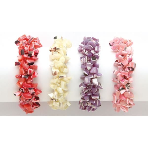 Stretch jewelry bracelets made of genuine sea shells. Four Best colors in a dozen. 12 bracelets in a bulk wholesale cheap discount case of bracelets.