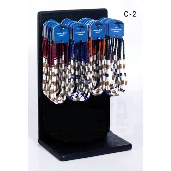 Shell Necklace with hemp and colorful beads. Four colors in 4 dozen assortment. Display rack not included.