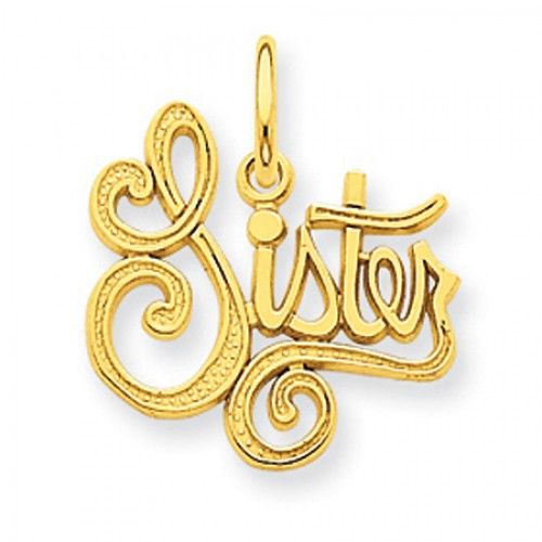 We Are Offering This Bright Sister Charm Designed of 14k Yellow Gold. It Has a Sister Script Motif. This Charm Is Finalized to a Glossy Like Finish Metal. Nab This Brilliant Sister Charm Now and Customized Your Bracelet or Necklace. Processing Time: 1 days. BRAND : GEMAFFAIR CHAIN TYPE : NO CHAIN TYPE CLASP TYPE : NO CLASP TYPE HEIGHT : 1 LENGTH : 19 METAL STAMP : 1.0 METAL TYPE : YELLOW GOLD METAL UNIT OF MEASURE : GRAMS TOTAL METAL WEIGHT : 14K UNIT OF MEASURE (DIMENSIONS) : MM WIDTH : 16