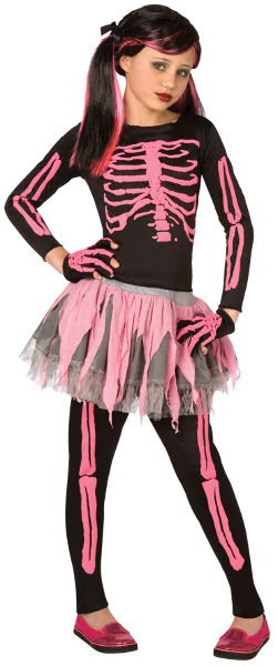 Black top and pants with imprinted pink skeleton comes with tutu skirt and matching skeleton gloves. Child large sizes 12-14. 100% polyester. Sold Individually Please note: If there is a color/size/type option, the option closest to the image will be shipped (Or you may receive a random color/size/type). BRAND : WMU PRODUCT_CODE : 846625003732 PRODUCT_CODE_TYPE : UPC