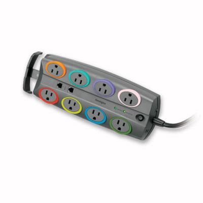 SmartSockets combines features and visual excitement to provide superior surge protection to your electronics against power spikes, brown outs, and black outs. Color-coded rings with matching color labels for easy connected equipment identification and cord management. 8-outlet, 8-ft cord, with 2490 joule rating. Right-angled plug for easy accessibility. $35,000 limited connected equipment warranty BRAND : KENSINGTON