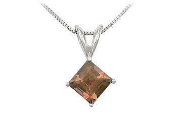 A square natural smoky topaz is securely held in a luscious 14K white gold prong setting. This gemstone pendant has a total weight (TGW) of 1.00 and comes with a standard 16 14K white gold chain.