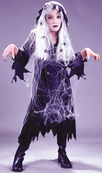 Ghost Wig, Hooded Gauze Coat, Dress with tattered edges and Spider Web detailing with spiders. Medium 8-10. Cotton, polyester." Sold Individually Please note: If there is a color/size/type option, the option closest to the image will be shipped (Or you may receive a random color/size/type). BRAND : WMU PRODUCT_CODE : 023168158277 PRODUCT_CODE_TYPE : UPC