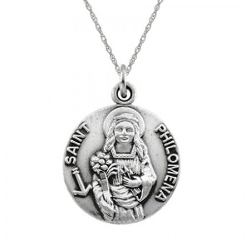Lift Your Spirits with This Marvelous St. Philomena Pendant Medal with 18.00 Chain. This Pretty St. Philomena Pendant Medal Is Made of Sterling Silver and Measures Approximately 18 Round. This St. Philomena Pendant Medal with 18.00 Chain Is the Perfect Way to Celebrate Your Favorite Religious Icon in Style. Processing Time: 1 days. Size: 18 BRAND : GEMAFFAIR CHAIN TYPE : SERPENTINE CLASP TYPE : LOBSTER CLAW HEIGHT : 1 LENGTH : 18 METAL STAMP : 7.1 METAL TYPE : STERLING SILVER METAL UNIT OF MEASURE : GRAMS SIZE : 18 TOTAL METAL WEIGHT : 925 STERLING UNIT OF MEASURE (DIMENSIONS) : MM WIDTH : 18