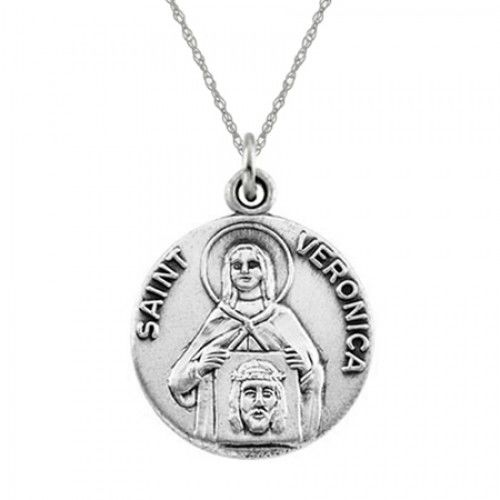 Lift Your Spirits with This Superb St. Veronica Pendant Medal with 18.00 Inch Chain. This Captivating St. Veronica Pendant Medal Is Made of Sterling Silver and Measures Approximately 18 Round. This St. Veronica Pendant Medal with 18.00 Inch Chain Is the Perfect Way to Honor Your Favorite Religious Icon in Style. Processing Time: 1 days. Size: 18 BRAND : GEMAFFAIR CHAIN TYPE : SERPENTINE CLASP TYPE : LOBSTER CLAW HEIGHT : 1 LENGTH : 18 METAL STAMP : 7.1 METAL TYPE : STERLING SILVER METAL UNIT OF MEASURE : GRAMS SIZE : 18 TOTAL METAL WEIGHT : 925 STERLING UNIT OF MEASURE (DIMENSIONS) : MM WIDTH : 18