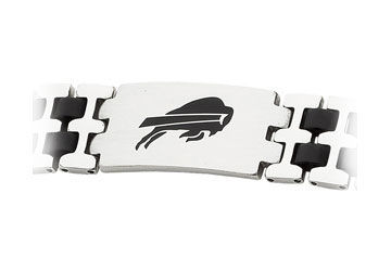 Stainless Steel and Rubber Buffalo Bills Team Logo Bracelet - 8 Inch |
