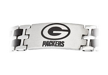Stainless Steel and Rubber Green Bay Packers Team Logo Bracelet - 8 Inch |