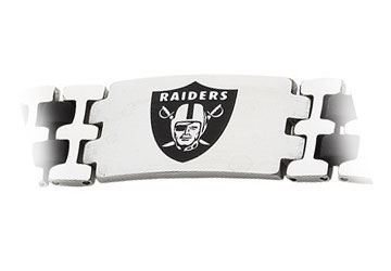 Stainless Steel and Rubber Oakland Raiders Team Logo Bracelet - 8 Inch