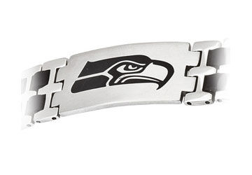 Stainless Steel and Rubber Seattle Seahawks Team Logo Bracelet - 8 Inch |