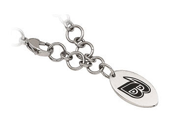 Polished stainless steel 8 inch Baltimore Ravens dangle Logo bracelet.