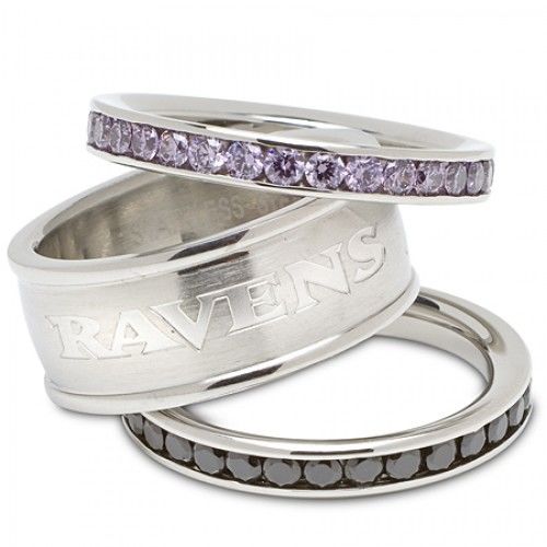 This Baltimore Ravens Stacked Ring Set Makes a Perfect Gift For Any Baltimore Sports Fan. Not Only Is Each Ring Made of Quality Stainless Steel, They Are Also Decorated with the Official Ravens Logo and Violet Team Colored Cz Stone. Try On This Nfl Officially Licensed Baltimore Ravens Team Logo Cubic Zirconia Stacked Ring Set and Support Your Favorite Nfl Team in Style. Processing Time: 4 days. BRAND : NFL Officially Licensed GEM TYPE : CUBIC ZIRCONIA GEM TYPE - 2 : CUBIC ZIRCONIA METAL STAMP : 11.4 METAL TYPE : STAINLESS STEEL METAL UNIT OF MEASURE : GRAMS SIZE : 6,7,8 STONE CLARITY : I1 STONE CLARITY - 2 : I1 STONE COLOR : VIOLET STONE COLOR - 2 : BLACK STONE COLOR - 3 : VIOLET STONE CUT : VERY GOOD CUT STONE CUT - 2 : VERY GOOD CUT STONE SHAPE : ROUND SHAPE STONE SHAPE - 2 : ROUND SHAPE STONE WEIGHT : 1.00 STONE WEIGHT - 2 : 1.00 TOTAL GEM WEIGHT : 2.00 TOTAL METAL WEIGHT : NO METAL STAMP UNIT OF MEASURE (DIMENSIONS) : MM