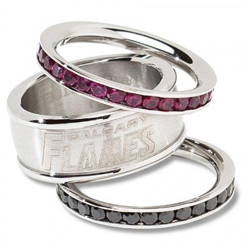 with This Calgary Flames Team Logo Stacked Ring Set You DonT Have to Sacrifice Style to Support Your Favorite Nhl Team. This Calgary Flames Stacked Ring Set Features the Official Flames Logo and a Red Cubic Zirconia Gemstone. It Is Made Out of Stainless Steel and Is Officially Licensed By the Nhl. This Calgary Flames Stacked Ring Set Features Style and Quality Rolled Into One Fascinating Accessory. Processing Time: 10 days. BRAND : NHL OFFICIALLY LICENSED GEM TYPE : CUBIC ZIRCONIA GEM TYPE - 2 : CUBIC ZIRCONIA METAL STAMP : 11.4 METAL TYPE : STAINLESS STEEL METAL UNIT OF MEASURE : GRAMS SIZE : 6,7,8 STONE CLARITY : I1 STONE CLARITY - 2 : I1 STONE COLOR : RED STONE COLOR - 2 : BLACK STONE COLOR - 3 : RED STONE CUT : VERY GOOD CUT STONE CUT - 2 : VERY GOOD CUT STONE SHAPE : ROUND SHAPE STONE SHAPE - 2 : ROUND SHAPE STONE WEIGHT : 1.00 STONE WEIGHT - 2 : 1.00 TOTAL GEM WEIGHT : 2.00 TOTAL METAL WEIGHT : NO METAL STAMP UNIT OF MEASURE (DIMENSIONS) : MM