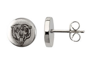 Stainless Steel Chicago Bears Logo Stud Earrings - 10.00MM X 10.00MM |