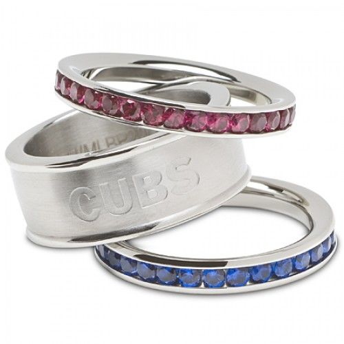 with This Chicago Cubs Team Logo Stacked Ring Set You DonT Have to Sacrifice Style to Support Your Favorite Mlb Team. This Chicago Cubs Stacked Ring Set Features the Official Cubs Logo and a Red Cubic Zirconia Gemstone. It Is Made Out of Stainless Steel and Is Officially Licensed By the Mlb. This Chicago Cubs Stacked Ring Set Features Style and Quality Rolled Into One Appealing Accessory. Processing Time: 10 days. BRAND : MLB OFFICIALLY LICENSED GEM TYPE : CUBIC ZIRCONIA GEM TYPE - 2 : CUBIC ZIRCONIA METAL STAMP : 11.4 METAL TYPE : STAINLESS STEEL METAL UNIT OF MEASURE : GRAMS SIZE : 6,7,8 STONE CLARITY : I1 STONE CLARITY - 2 : I1 STONE COLOR : RED STONE COLOR - 2 : BLUE STONE COLOR - 3 : RED STONE CUT : VERY GOOD CUT STONE CUT - 2 : VERY GOOD CUT STONE SHAPE : ROUND SHAPE STONE SHAPE - 2 : ROUND SHAPE STONE WEIGHT : 1.00 STONE WEIGHT - 2 : 1.00 TOTAL GEM WEIGHT : 2.00 TOTAL METAL WEIGHT : NO METAL STAMP UNIT OF MEASURE (DIMENSIONS) : MM