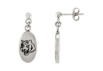 Polished stainless steel 27.60MM X 10.00MM Cincinnati Bengals Logo dangle earrings.