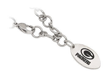 Stainless Steel Green Bay Packers Logo Dangle Bracelet - 8 Inches
