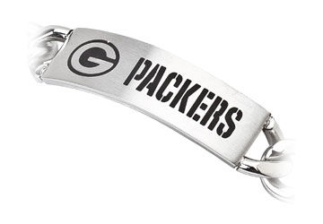 Stainless Steel Green Bay Packers Team Name and Logo ID Bracelet - 8 Inch |