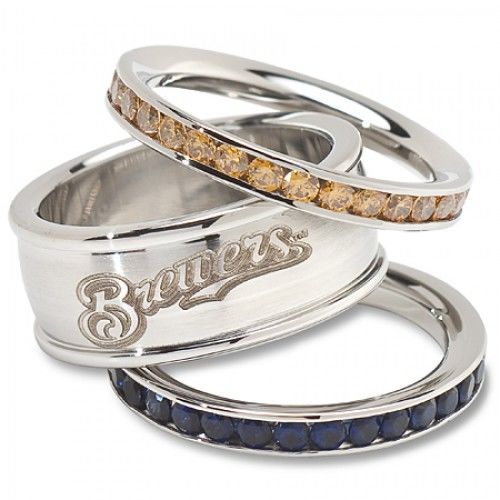 Stainless Steel Milwaukee Brewers Team Logo Ring Set |
