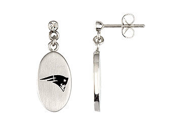Polished stainless steel 27.60MM X 10.00MM New England Patriots Logo dangle earrings.