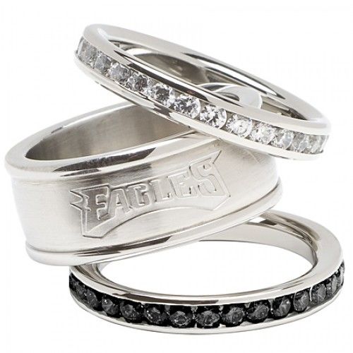 with This Philadelphia Eagles Team Logo Stacked Ring Set You DonT Have to Sacrifice Style to Support Your Favorite Nfl Team. This Philadelphia Eagles Stacked Ring Set Features the Official Eagles Logo and a White Cubic Zirconia Gemstone. It Is Made Out of Stainless Steel and Is Officially Licensed By the Nfl. This Philadelphia Eagles Stacked Ring Set Features Style and Quality Rolled Into One Delightful Accessory. Processing Time: 4 days. BRAND : NFL Officially Licensed GEM TYPE : CUBIC ZIRCONIA GEM TYPE - 2 : CUBIC ZIRCONIA METAL STAMP : 11.4 METAL TYPE : STAINLESS STEEL METAL UNIT OF MEASURE : GRAMS SIZE : 6,7,8 STONE CLARITY : I1 STONE CLARITY - 2 : I1 STONE COLOR : WHITE STONE COLOR - 2 : BLACK STONE COLOR - 3 : WHITE STONE CUT : VERY GOOD CUT STONE CUT - 2 : VERY GOOD CUT STONE SHAPE : ROUND SHAPE STONE SHAPE - 2 : ROUND SHAPE STONE WEIGHT : 1.00 STONE WEIGHT - 2 : 1.00 TOTAL GEM WEIGHT : 2.00 TOTAL METAL WEIGHT : NO METAL STAMP UNIT OF MEASURE (DIMENSIONS) : MM
