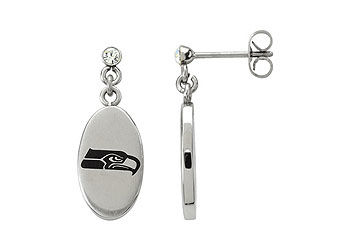 Stainless Steel Seattle Seahawks Logo Dangle Earrings - 27.60MM X 10.00MM |