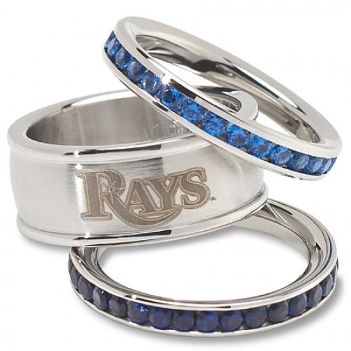 with This Tampa Bay Rays Team Logo Stacked Ring Set You DonT Have to Sacrifice Style to Support Your Favorite Mlb Team. This Tampa Bay Rays Stacked Ring Set Features the Official Rays Logo and a Blue Cubic Zirconia Gemstone. It Is Made Out of Stainless Steel and Is Officially Licensed By the Mlb. This Tampa Bay Rays Stacked Ring Set Features Style and Quality Rolled Into One Classy Accessory. Processing Time: 10 days. BRAND : MLB OFFICIALLY LICENSED GEM TYPE : CUBIC ZIRCONIA HEIGHT : 2 LENGTH : 13 METAL STAMP : 11.4 METAL TYPE : STAINLESS STEEL METAL UNIT OF MEASURE : GRAMS SIZE : 6,7,8 STONE CLARITY : I1 STONE COLOR : BLUE STONE CUT : VERY GOOD CUT STONE SHAPE : ROUND SHAPE STONE WEIGHT : 1.00 TOTAL DIAMOND WEIGHT : 2.00 TOTAL GEM WEIGHT : 2.00 TOTAL METAL WEIGHT : NO METAL STAMP UNIT OF MEASURE (DIMENSIONS) : MM WIDTH : 22