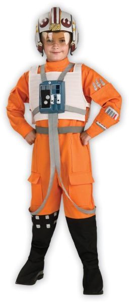 Become the brave pilot who was Last of the Jedi! Orange jumpsuit, a vest with straps, character chest box and matching character helmet. Child fits size 12-14." Sold Individually