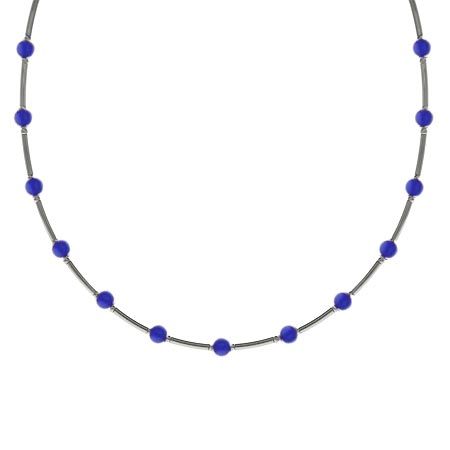 Sterling Silver .925 Glass Dark Blue Cats Eye Stone Bar and Bead Necklace |