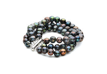 Sterling Silver and Freshwater Black Cultured Pearl Triple Strand Bracelet - 7.25 Inch / 8-9 MM |