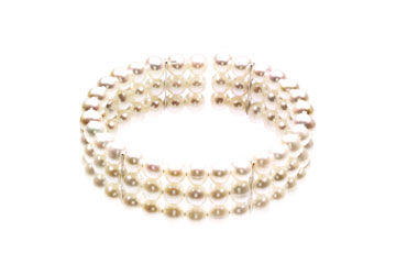 Sterling Silver and Freshwater Cultured Pearl 3 Row Cuff Bangle Bracelet - 7.5 Inch / 5.5-6 MM |