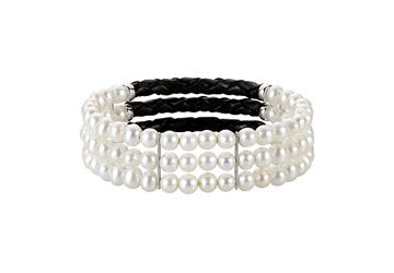 Sterling Silver and Freshwater White Cultured Pearl Triple Row Bracelet - 7 Inch / 5-5.5 MM |