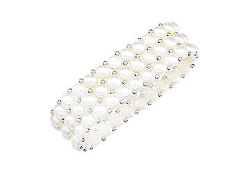 Three rows 6 MM freshewater white cultured pearl is elegantly set on .925 sterling silver stretch bracelet.