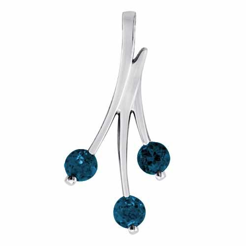 This dazzling sparkling timeless pendant is classic and can be used as an engagement pendant, anniversary pendant, bridal pendant, promise pendant, proposal pendant, fashion pendant, wedding pendant, cocktail pendant and also to represent eternal love between you and that special someone.This sterling silver pendant is prong set with 3 round irradiated blue diamonds with a total carat weight of approximately 0.70 carats The pendant measures approximately 13.5 x 28 mm and includes a 1.25 mm wide 18 inch solid sterling silver rope chain. All our jewelry is shipped via FedEx Ground with a Certificate of Authenticity, jewelry polishing cloth, and jewelry box. BRAND : BRITNEY GEM CATEGORY : IRRADIATED BLUE DIAMOND GEM COUNT : 3 GEM SETTING : PRONGS GEM SHAPE : ROUND METAL : STERLING SILVER SPECIAL : BLUE DIAMOND JEWELRY
